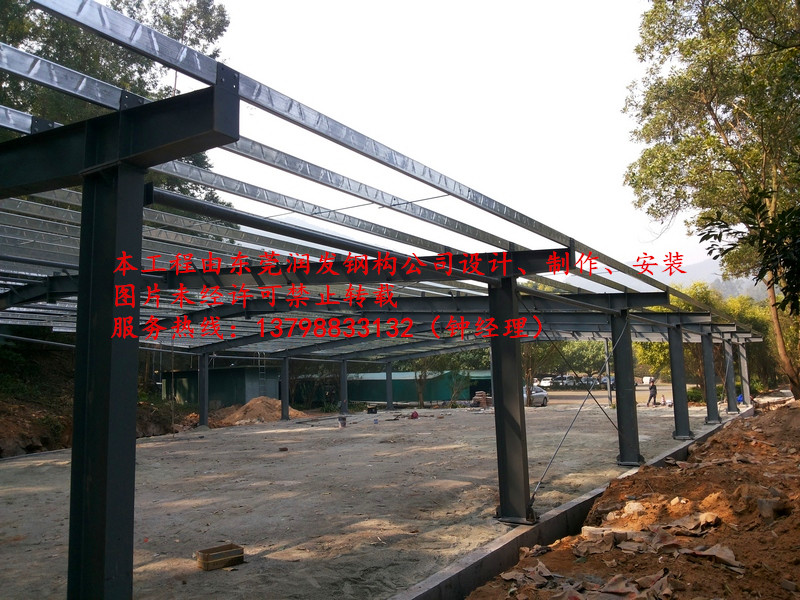 本工程為東莞潤發(fā)鋼結構工程有限公司,在廣州南沙區(qū)下灣西街85號(廣州南沙高爾夫球會有限公司)高爾夫球車庫的工程項目,總面積1688平方米,為停放高爾夫球車使用,全部工程由本公司設計、制造、安裝、施工。聯(lián)系電話:13798833132(鐘經理)