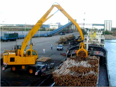 適用工況:碼頭卸船;港口貨場堆儲;火車卸煤、礦石、鋼管;造紙、人造板廠圓木裝卸;鋼廠廢鋼裝卸等等;